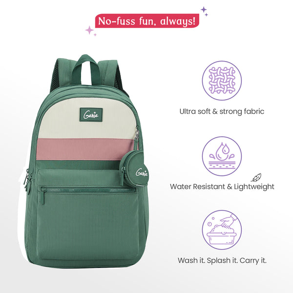 The Essence 28L Green Laptop Backpack is a must-have for women and girls who need a reliable, stylish companion for school, work, or travel. Whether you’re heading to class, commuting to the office, or going on a weekend trip, this backpack provides the perfect balance of functionality and flair.