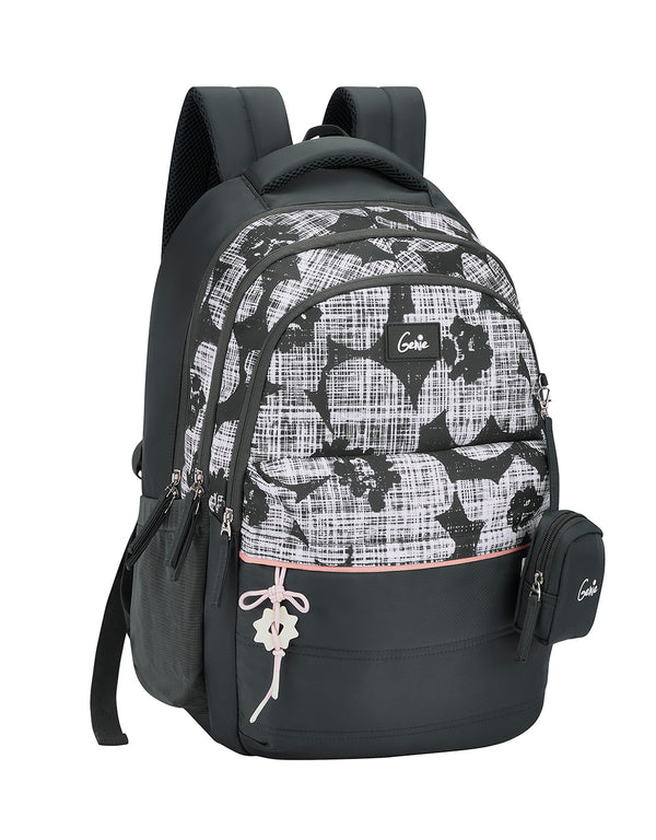 Distinctive and chic, Nora in wine adds a modern twist with its pixelated foliage print across the top half. This 19-inch girls laptop backpack features three spacious compartments, a front organiser pocket, and a padded laptop sleeve for easy storage. With a secret pocket, rain cover, and Happy Pouch included, it’s perfect for girls who love bold prints and everyday practicality.