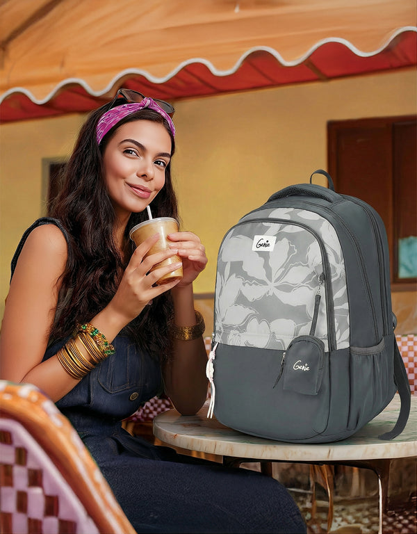 Soft, subtle, and perfectly composed, Petone in grey features a floral print across the top half that balances simplicity with charm. This 19-inch girls backpack includes three compartments, a padded laptop sleeve, and a front organiser pocket with pen loops. With a secret pocket, rain cover, and Happy Pouch, it’s designed for effortless organisation and timeless appeal.